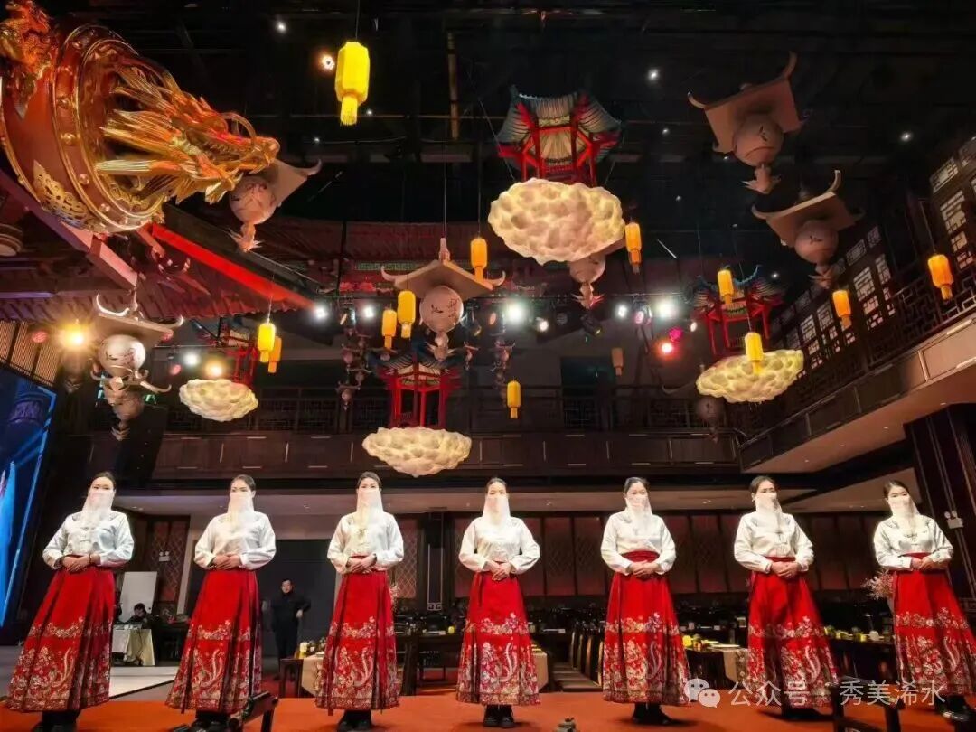 宴间穿插苏庞会、古风舞蹈、绸缎凌空、浠水民谣