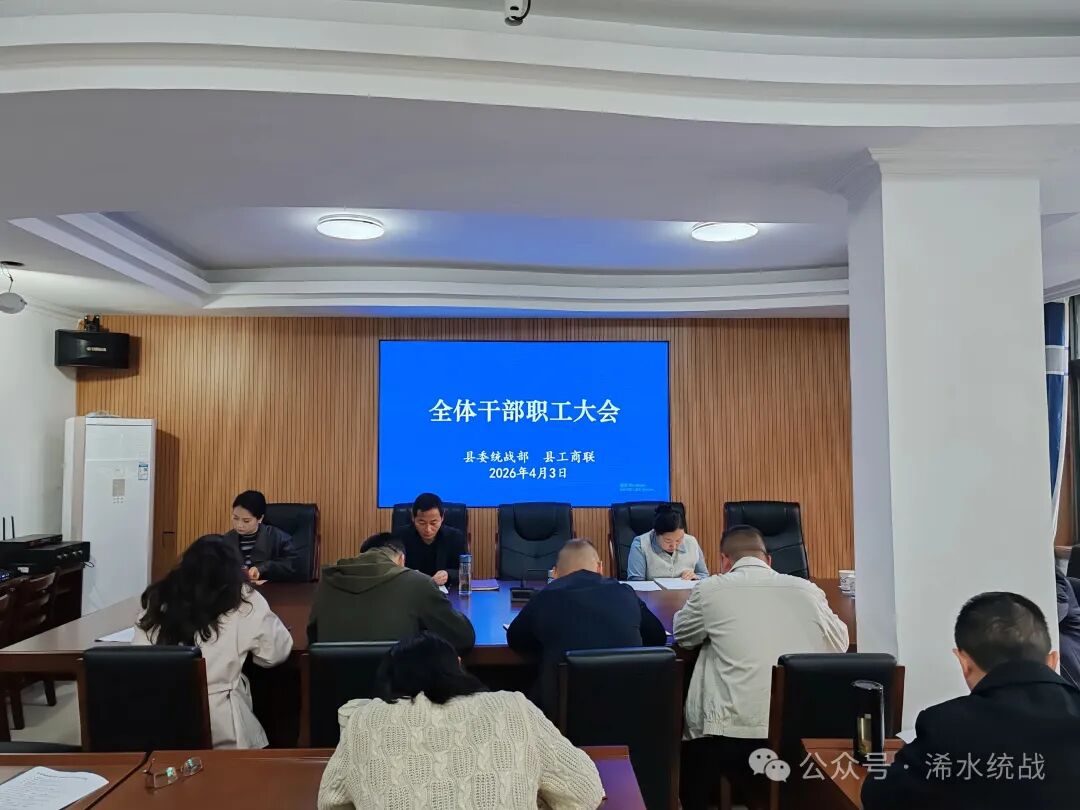 4月3日,县委统战部召开清明节前作风建设提醒谈话会,县委统战部、县工商联全体干部职工参加会议。