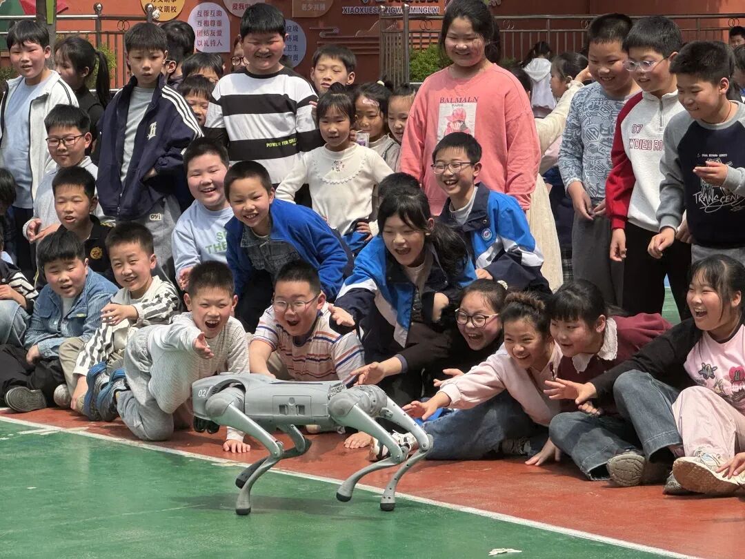 四足机器人的亮相更是将现场气氛推向高潮,灵活的动作、智能的交互,让孩子们围拢在机器人旁,近距离感受人工智能的魅力,眼中满是惊叹与向往。