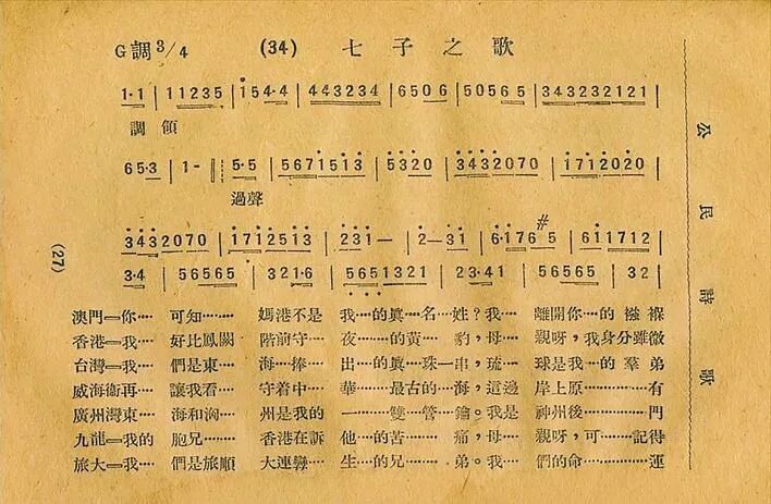 《公民诗歌》收录的《七子之歌》首版曲谱。