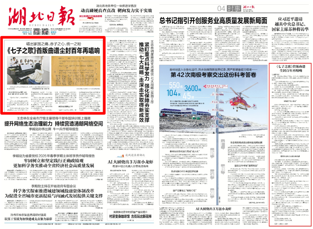 《七子之歌》首版曲谱尘封百年再唱响
