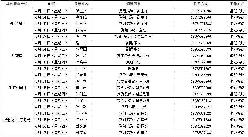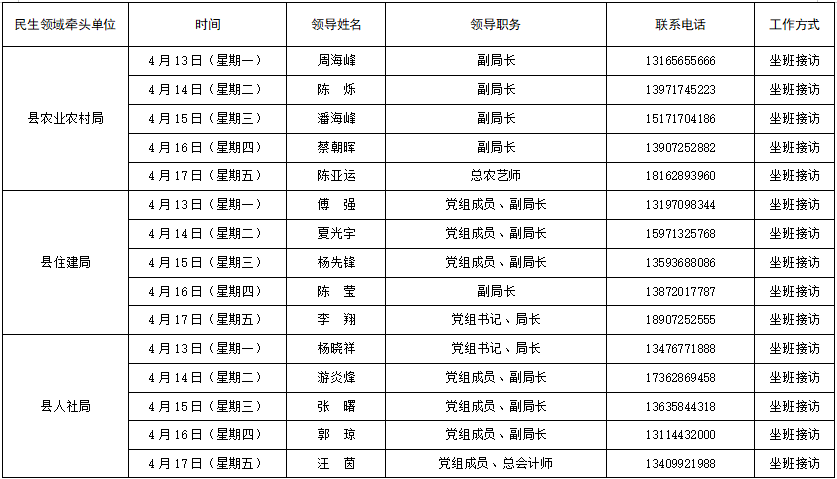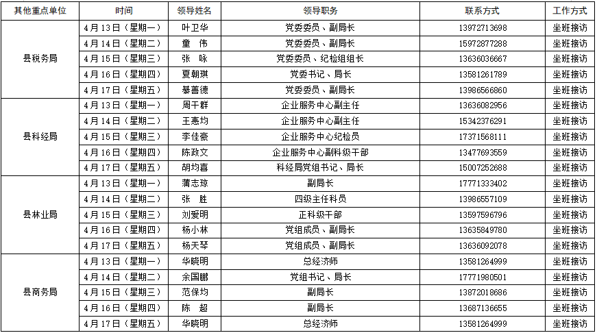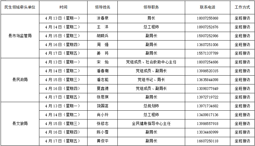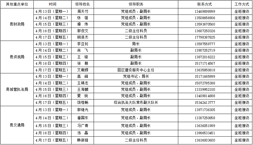 4.如遇接访县领导工作冲突,县信访局将进行临时调整。