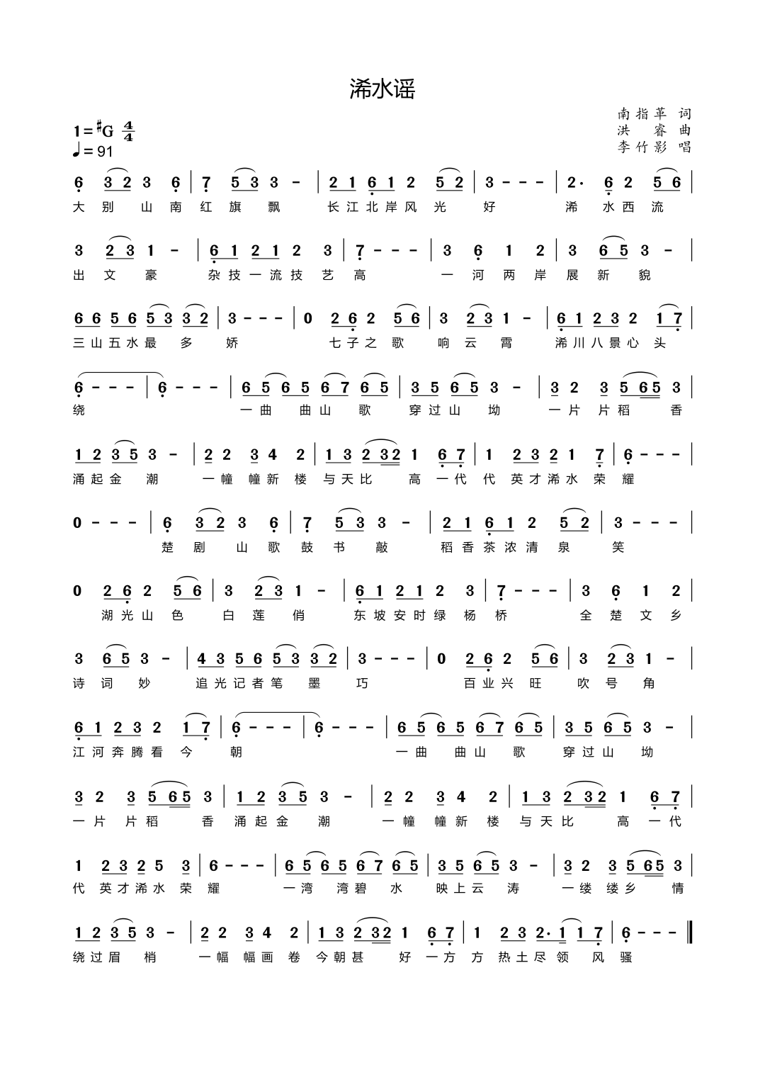 《浠水谣》以“浠水西流、杂技一流”为宣传推广主题,用“一河两岸、三山五水、浠川八景”等经典美景串珠成链,以景寄情,以歌颂恩,属浠水地方特色文化原创音乐。