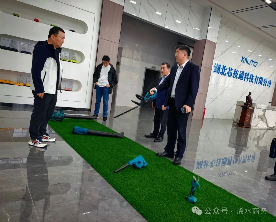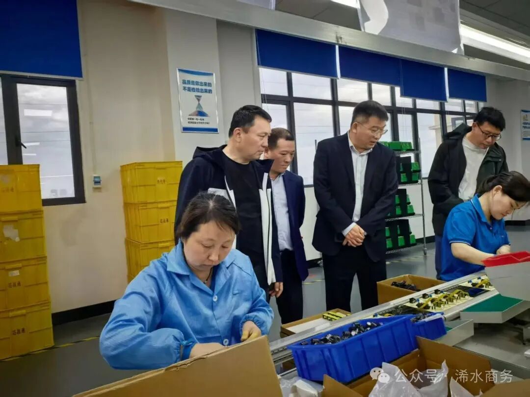 明齐利一行前往湖北芯技通科技有限公司调研,深入生产车间视察,浠水县商务局局长余国鹏陪同。