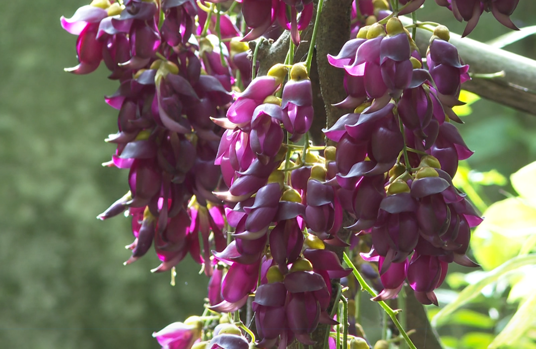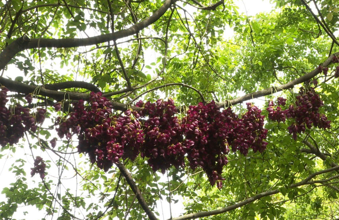 禾雀花是国家二级保护植物,每到4至5月的盛花期,成串的紫红色花朵从老茎上垂挂而下,远观如万千雀鸟栖息枝头,蔚为大观。华晖高中的500余名师生便趁着春光前来春游赏景。