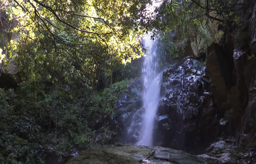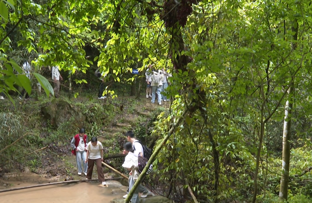 走进绿杨乡狮子岭村的深山腹地,全长1500米的禾雀花谷如一条天然生态画廊,被茂密的树林环抱,一条清澈溪流穿谷而过,潺潺流水伴着花香,空气清新得如同天然氧吧。