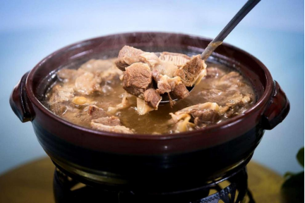 它的做法是取用新鲜土猪膈皮肉,切成均匀块状,先焯水,放入少许菜籽油炒香,再加开水焖煮约5分钟后,盛入小瓦罐,配辅料,文火焖煮一小时以上即可上桌食用。本道菜品鲜嫩可口,咸香浓郁,性质温和,营养丰富,具有清润补阴虚,增强抵抗力等功效,为绿杨特色招牌菜之一。
