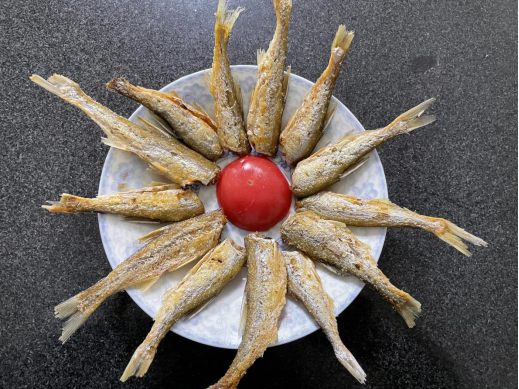刁子鱼,也叫刀子鱼、白刁鱼,生长在白莲河水库及上下游支流等淡水湖河,形如柳叶,却肉质鲜美。此鱼种长不大,一离开水,很快就死去,人工无法饲养,渐渐地人们都习惯把它叫成刁子鱼,具有丰富营养价值,有滋补健胃、利水消肿的作用,还具有亮发、健脑、明目、温肺等功效。将刁子鱼洗净去脏,煎炒出锅,即是一道美味佳肴,其口感酥脆,又有鱼肉的细嫩鲜香,十分美味。