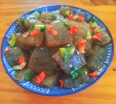 春天的季节里,农村的山上总是充满了生机与活力,竹笋破土而出。取野竹笋剥掉外皮,只保留里面的嫩芽,锅里加入清水,将洗净的腊肉与竹笋一起下入锅中煮沸,2-3分钟后捞出,把竹笋迅速放入冷水中,使竹笋口感更脆,色泽鲜亮。腊肉切片或条状,竹笋也手撕成条,并切段。先把较肥的腊肉放入锅中炒出油,再依次下入瘦肉与竹笋,加入调料,最后翻炒出锅。腊肉独特的香味与小竹笋的鲜嫩口感相互融合,让人回味无穷。在过去,家家户户都会制作豆腐,如今很多乡村仍然保留着制作豆腐的传统。农家豆腐是一道家常菜,将豆腐切成块状,热油下锅煎煮。农家豆腐质地清爽,满满的豆腐香味,口感不老不嫩,十分下饭。