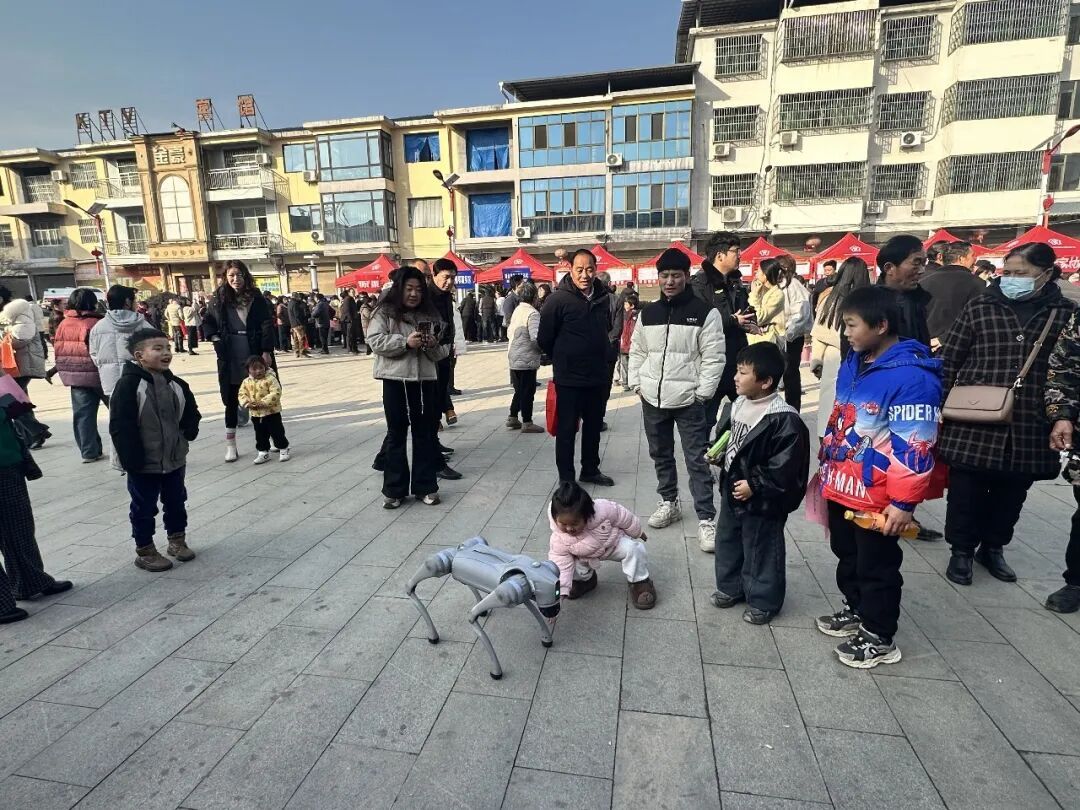 活动现场气氛热烈,科技展演成为亮点。智能机器狗、跳舞机器人接连登场,通过灵活的动作展示与趣味互动,吸引了众多群众驻足观看。