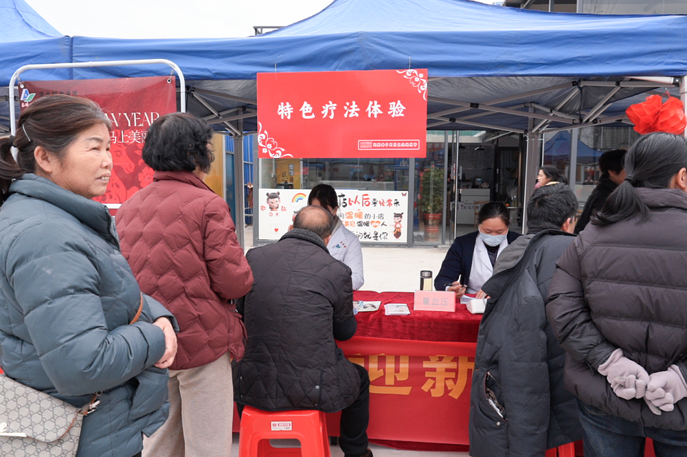 2月3日下午,浠水县大菠萝风情街夜市人潮涌动、药香弥漫,一场别开生面的“迎新春中医药文化进夜市——‘本草迎新·福暖岁安’”活动在此热烈举行。本次活动由县卫生健康局主办、县总医院中医院协办,巧妙地将传统中医药文化与新春民俗、夜市经济相融合,为市民打造了一个集健康体验、文化欣赏与趣味互动于一体的新春健康文化盛宴。