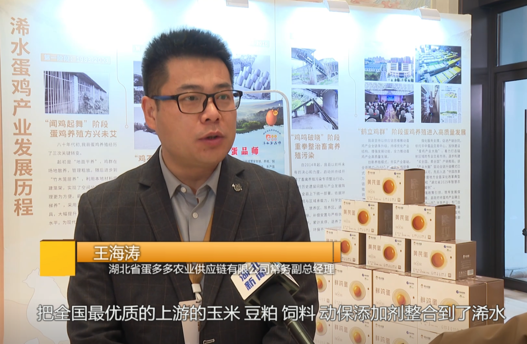 湖北省蛋多多农业供应链有限公司常务副总经理 王海涛:把全国最优质的玉米、豆粕、饲料、动保添加剂整合到了浠水,后续在香港打响品牌,跟大型商超、连锁企业、中国石化、中国邮政这些企业进行深度洽谈合作。