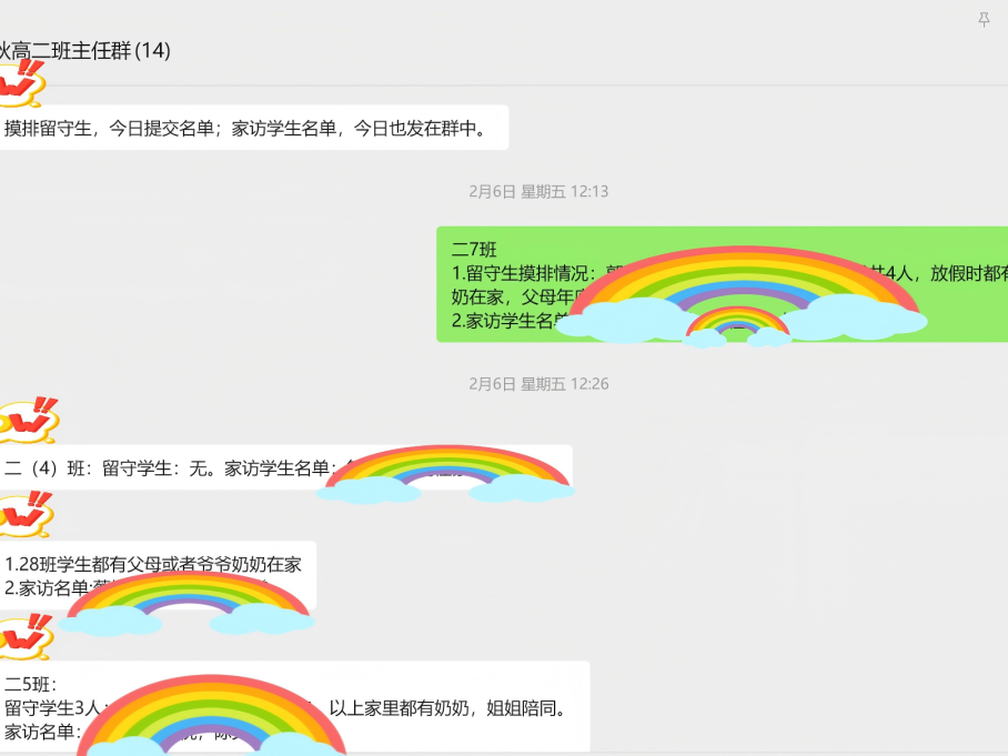家校同心,同向同行。一句句温暖的问候,一次次真诚的沟通,拉近了学校与家庭的距离,凝聚了育人共识。家长们纷纷对学校、老师点赞,表示将全力配合学校工作,与学校携手并肩,共同守护孩子健康成长。学生们也备受鼓舞,纷纷表态会珍惜假期、自律自强,不辜负老师与家长的期望。