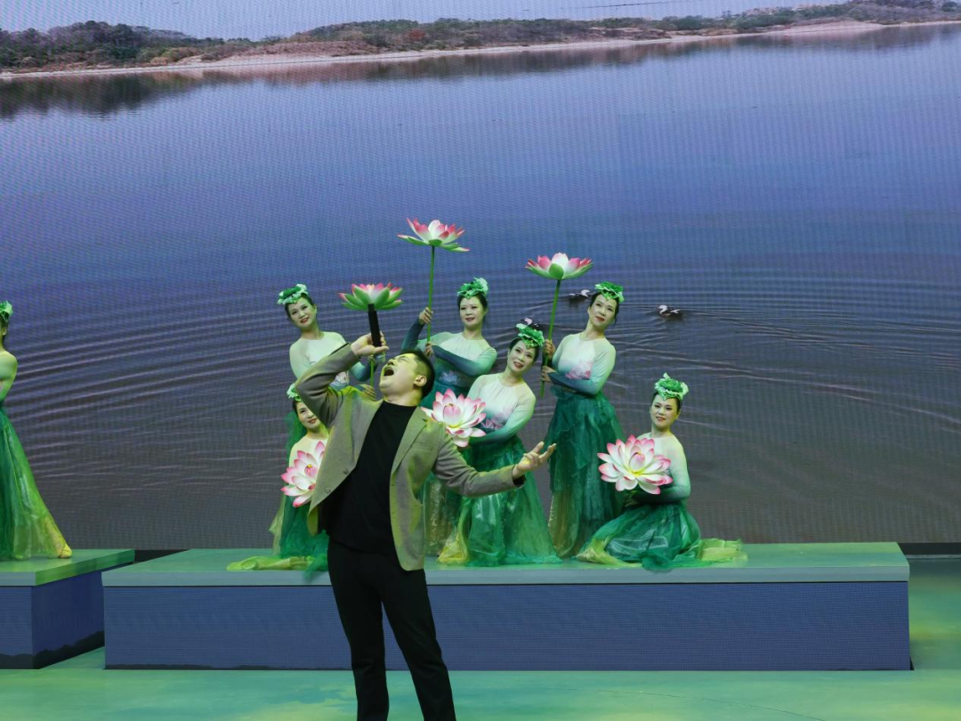巴水悠悠,载着岁月的清响,也载着赤子的深情。杂技《红烛》以灵动又厚重的艺术姿态,将闻一多先生的英勇不屈与赤诚报国化作指尖的流转、身姿的腾跃,那份刻在骨子里的风骨,在光影间静静流淌,直抵人心。一曲黄梅《闹花灯》,唱腔婉转,眉眼传情,唱词里裹着浓浓的年味,将华夏大地的火树银花、盛世欢腾,都揉进了这一方戏台;《故乡望天湖》《巴河九孔藕》两首乡曲,浸着浠水最醇厚的烟火气,伴着乡音袅袅漫过耳畔,身后的伴舞及电子屏将望天湖的碧波轻漾、巴河藕的清甜漫溢,与先生故乡日渐焕新的模样,一一呈现,我默然轻语,先生,家乡人皆安暖顺遂,你,是我们心底永远的荣光。